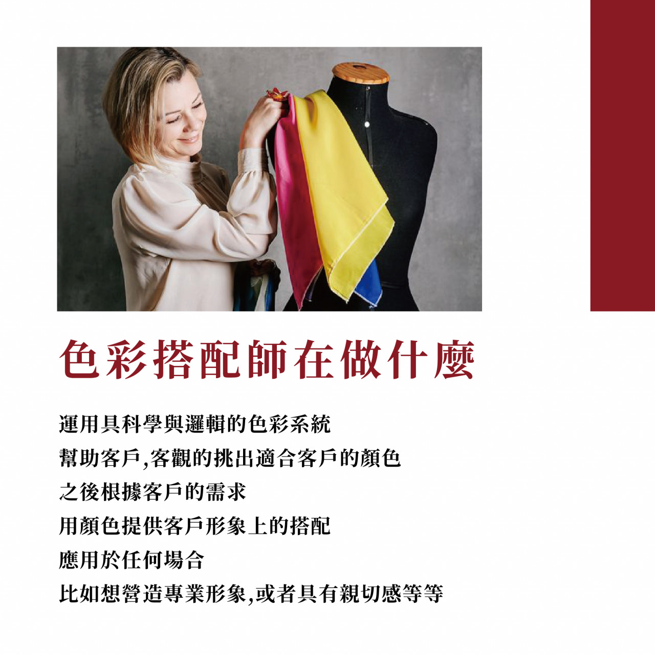 時尚界、服飾業工作者:透過這堂課可以更有效率的給客戶作穿搭配色提案
